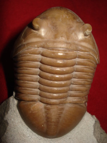 Nileus armadillo是俄羅斯三葉蟲中產量較稀少的品種之一,蟲體長3公分,也是較小型的三葉蟲,圓圓的頭鞍加上大大的眼睛和微笑般的縫合線,使的它可愛非常,有點透明的表殼可看到體內的筋肉組織,此標本保存的不錯,一雙全色眼用30倍的放大鏡即可清楚看到,蟲體修補1%,請大家欣賞..