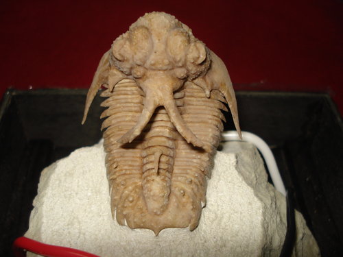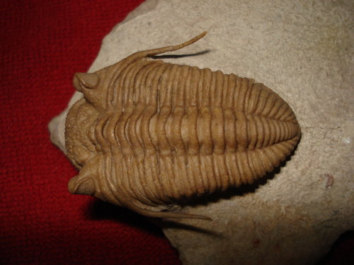 Pliomera fischeri是產於俄羅斯聖彼得堡的數種三葉蟲之一,也是市場上很受歡迎的三葉蟲品種,它胸節數量很多,大概有18節左右,此標本保存的還不錯,不管是頭鞍,活動頰,複眼,胸節各方面,而且很難得的是沒經任何塑料修補,此標本蟲體長約4.3公分,請大家欣賞..